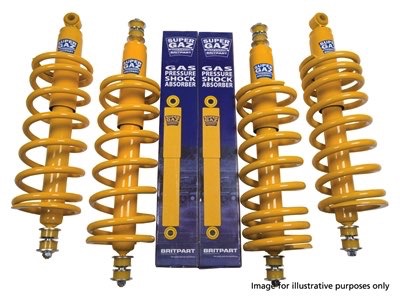 Britpart Super Gaz Shock Absorbers offer a 35mm bore tube filled with Fuchs shock absorber fluid, using the best seal available, single piece eye rings, polyurethane bush mounts and a very durable powder coated finish. These offer a vast improvement in ride quality and damping performance.
