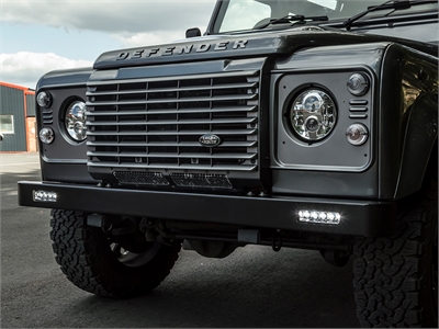 This smart and functional standard fit Defender bumper is equipped with a pair of LED lights for additional lighting in the dark or day light running for safety.